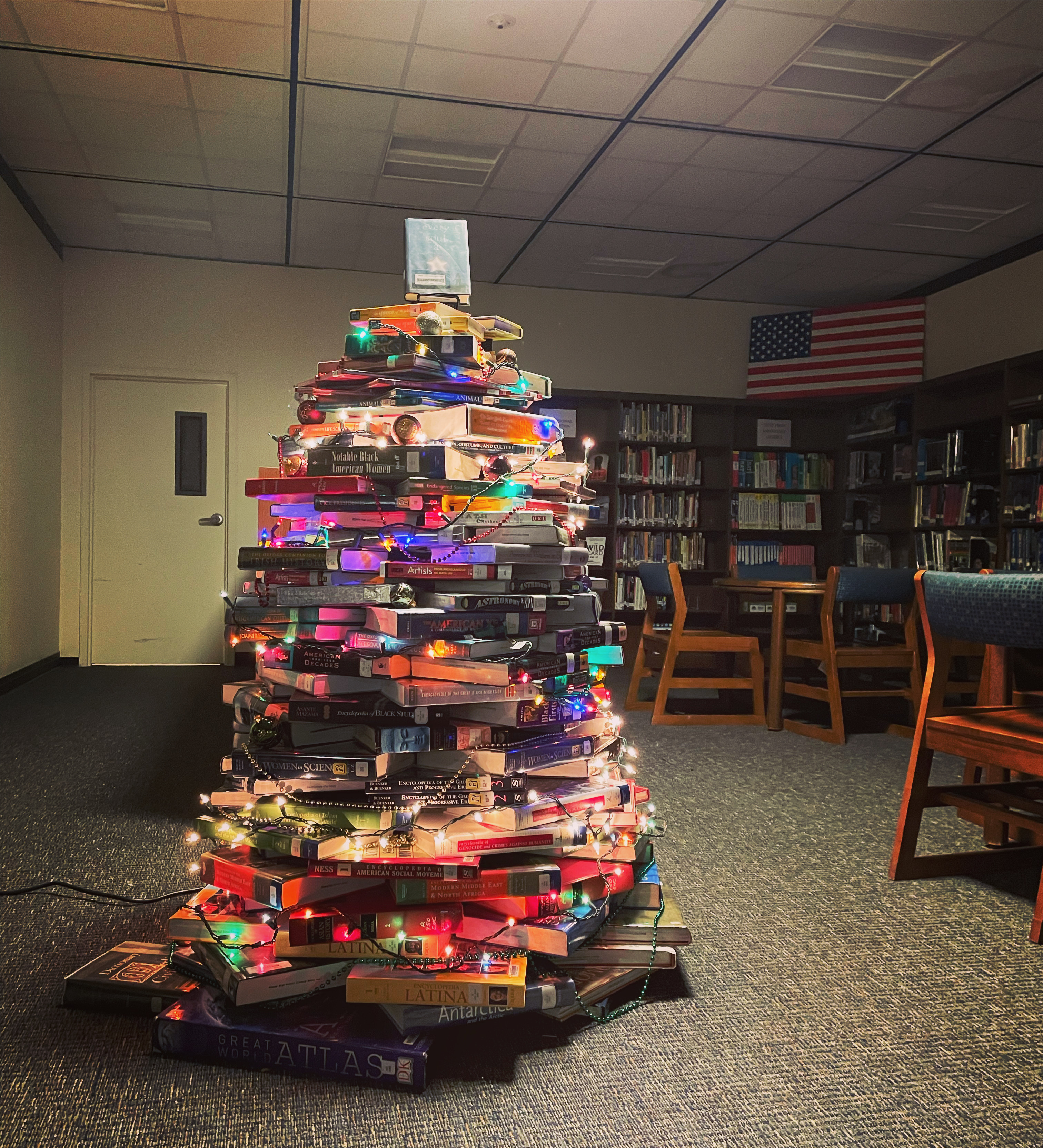 It was on hiatus for the last two years but it’s back this year and it looks more beautiful than ever. It’s pretty to look at, cooler to see in person, and the competition gets fierce the last week before the holiday break when students get to guess how many books it took to build.