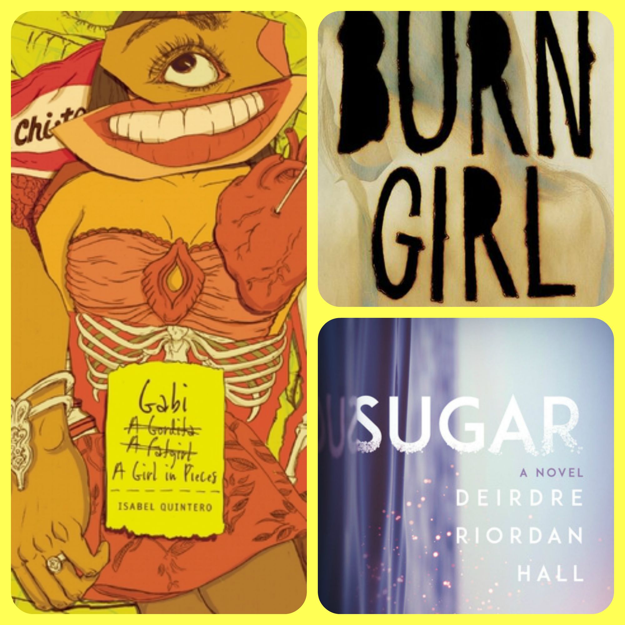 Addiction is tough, but when you’re watching an adult continually make horrible decisions that affect them and their families, like Gabi, there’s not much to help navigate through it other than some humor. In Gabi, Girl in Pieces by Quintero, it’s exactly her humor that makes it memorable. So first, you need a dose of humor. Second, like Riordan Hall’s first book, Sugar, you’ll need the help of family. For Mercy, an emotionally abusive mother and brother dependent on her for more than any teenager should have to support, its Mercy’s older brother, who has pulled himself out of the tumultuousness that is now helping her too. Second, you need a cheerleader. And speaking of a cheerleader, Arlie from Mikulencak’s Burn Girl, has a long-lost uncle and best friend along with a new boyfriend who are her biggest supporters. They need her to move on from her mother’s fatal overdose and her burns from a meth explosion years ago. So, third is not just a family member for support but friends who are rooting for you as well.