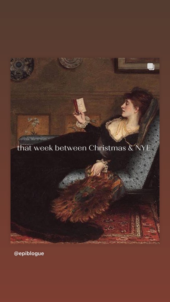 I love the week between Christmas and New Year not only because I have it off since I work in education, but because I get to read because it’s vacation. Plenty of audiobook listening when cleaning and organizing plus plenty of tea sipping print book time. So when I saw a blogger @epiblogue’s Instagram post: