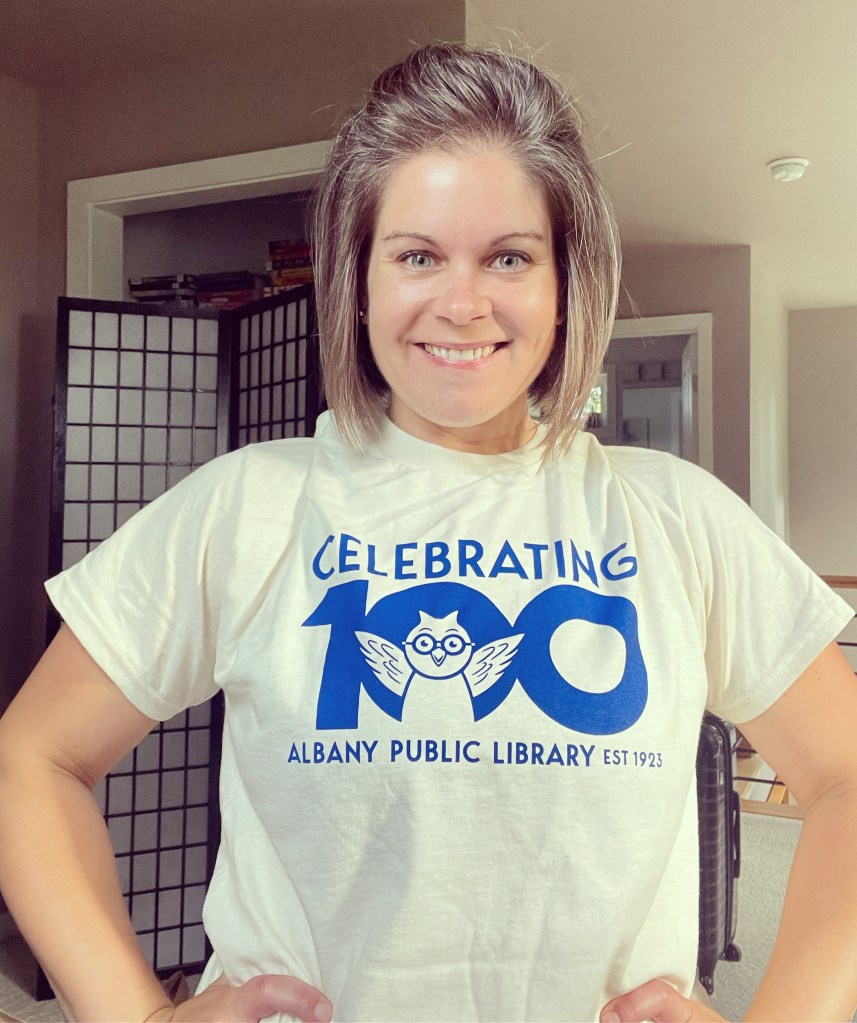 Then, the city library for the school district I work in is large with multiple branches and a committed group who run an online summer reading program for adults that features weekly themes and recommendations while encouraging participants to chat with one another online. So, read a certain number of books, get a tshirt. Well reader, I am in possession of that tshirt!