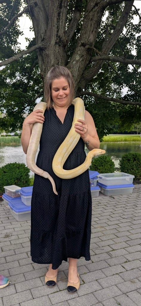 What I liked most was the less is more approach– it was a two-hour event, it focused and did well to enhance the activity stations and events. My teenage boys had just as much fun as a five year old and I faced a fear by draping a rather large albino snake around me after the reptile show ended.